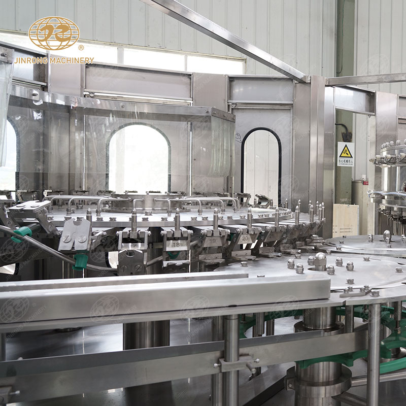 金榮機械生產的三合一碳酸飲料灌裝機采用不銹鋼材料制成。具有結構合理、工藝先進、操作方便、適用范圍廣等特點,是中小型飲料廠家理想的生產流水線機組。